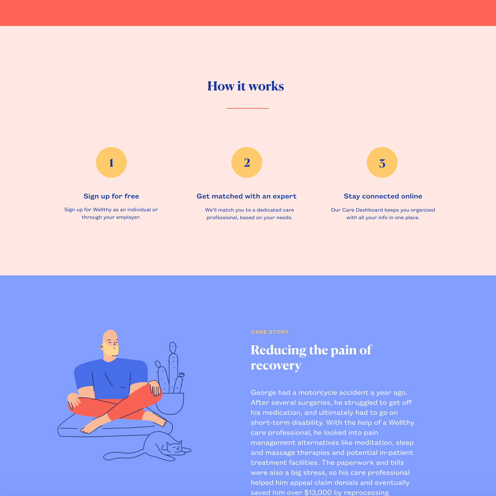 I was the lead designer in a 3-week design sprint. In that time, our team gave Wellthy a design refresh, providing a new website, illustration kit, and copywriting to help clarify the offering and message.